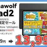 楽天で「Headwolf Titan 1」が格安になるLINEクーポンキャンペーンを開催!Dimensity 8300搭載&144Hz対応の最新小型ゲーミングタブ